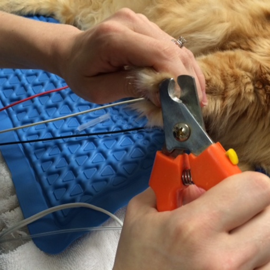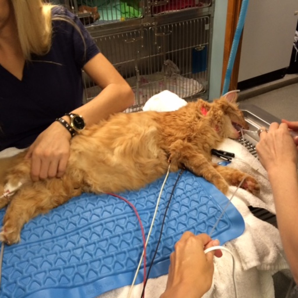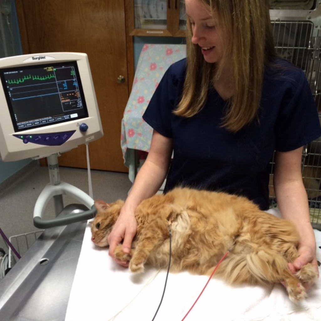 Next we do a pre-anesthetic EKG to check for arrhythmias that would prevent us from doing anesthesia or alert us of problems that would require cardiac interrogation before deciding to go further. At IVC we probably cancel one anesthesia a month due to arrhythmias we find on the EKG.
